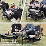 2.【Attention Grabbing Details】 ◆ Small item storage rack: There is a convenient storage rack under the desktop. Can store small items such as tableware. ◆ Side pocket: It can hold items such as mobile phones and glasses. ◆ Lantern holder: can hang camping lantern to illuminate the surroundings. Camping at night can also be spent comfortably.