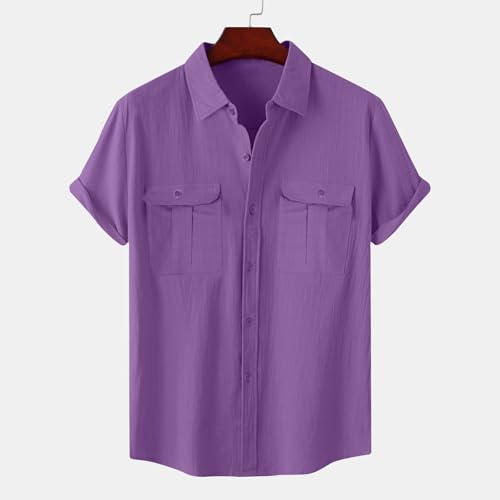 APIVOE Linen Shirts for Men Short Sleeve Button Down Dress Shirt Regular Fit Business Casual Shirts Summer Beach Tee Shirts