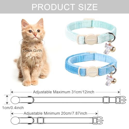 ARING PET 2 Pack Cat Collar-Cute Cotton Cat Collar with Bell & Pendant, Adjustable Blue Green Kitten Collars with Safety Buckle for Girl and Boy Pets