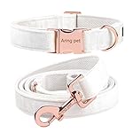 Home Pet Supplies Collars ARING PET Dog Collar and Leash Set, Soft White Velvet Dog Collar and Leash, Adjustable Collars for Dogs