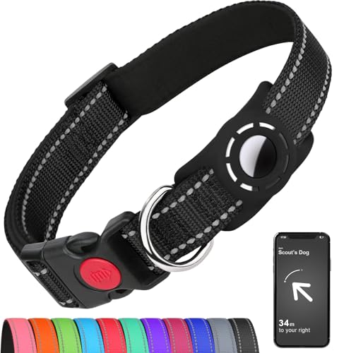 Airtag Dog Collar for Small Dogs, Reflective Dog Collars with AirTag Holder, Soft Padded & Safety Locking Buckle, Nylon Pet Collar Adjustable for All Breeds, Black $9.99