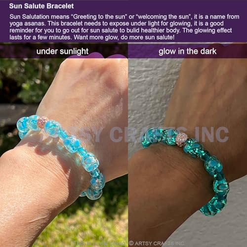Glow in the Dark Firefly Bead Bracelets, Peacock Feather Murano Glass Jewelry for Women, Mermaid Luminous Crystals Trendy Bracelets Bangles Handmade in USA