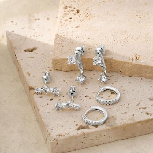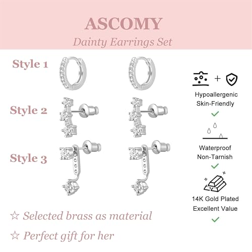 ASCOMY Gold Hoop Earrings for Women Gold Earrings Set 14K Gold/White Gold Plated Huggie Hoops Earrings Cubic Zirconia Earrings CZ Stud Chunky Open Hoop Earrings Set Jewelry Gifts for Women
