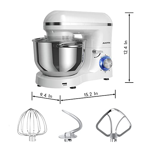Multiple Attachment Set – Aucma stand mixer comes with three mixing accessories: whisk, dough hook, mixing beater.The splash guard with access hatch helps add ingredients without making a mess.