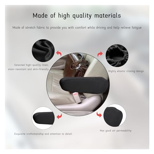 【Good Material】: Take your driving comfort to the next level with this armrest covers. This seat armrest cover is crafted from high quality stretch cloth, delivering a luxuriously soft and comfortable touch. Its breathable and skin-friendly properties ensure a pleasant seating experience. The resistant to dirt and tear material makes it effortless to clean and maintain, guaranteeing long-lasting.
