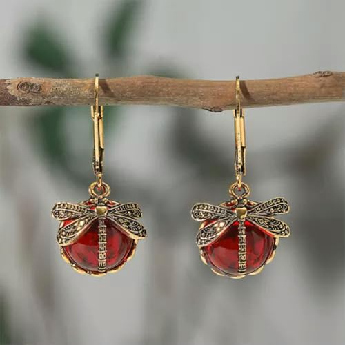 Women Jewelry Vintage Earrings Dragonfly Drop Earrings Moonstone Jewelry Antique-Red $14.94
