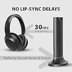 [PERFECT TV COMPANION] Enjoy private audio at volumes that suit your needs without disturbing those around you. The headphones & transmitter connect automatically via 2.4Ghz – no pairing required.