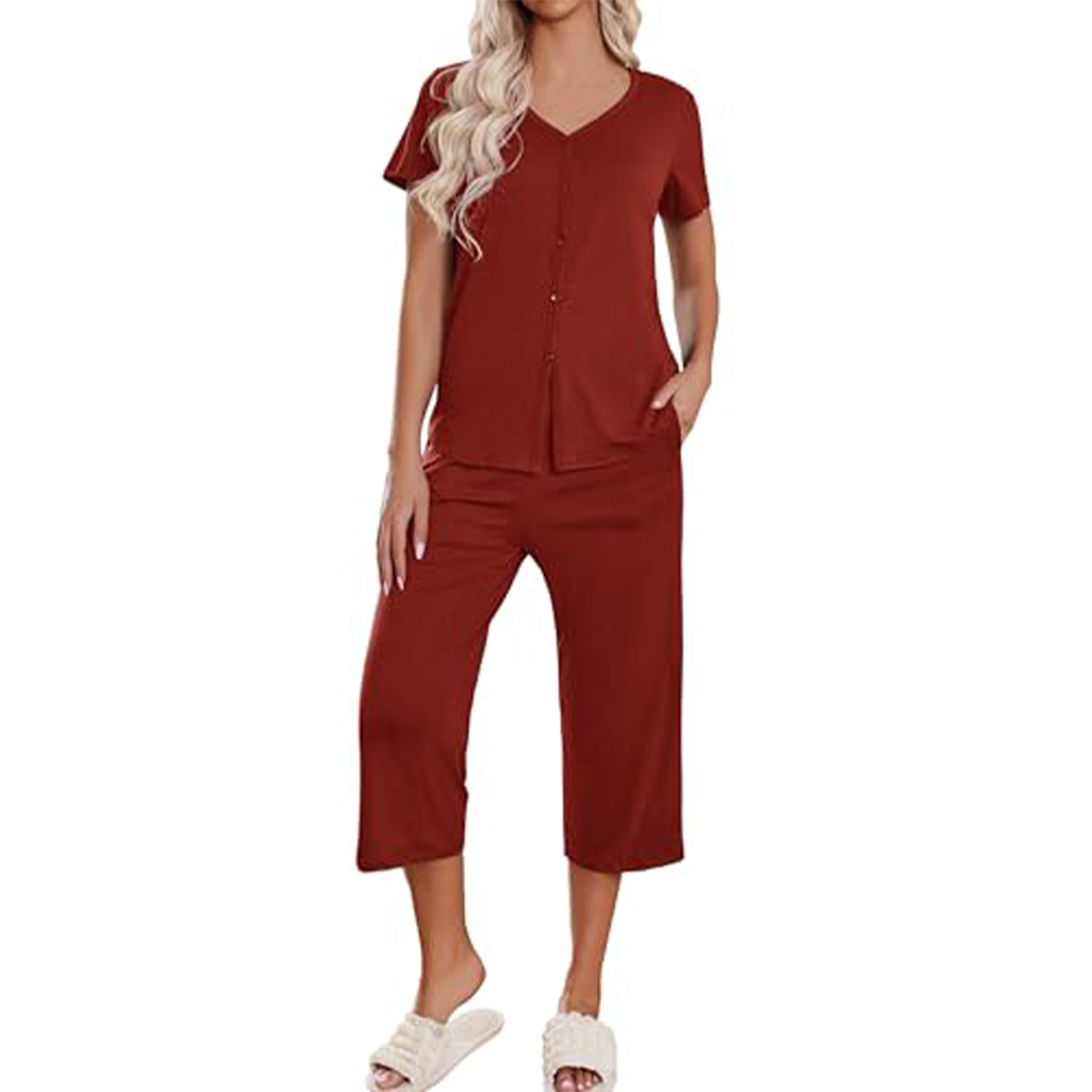 Ekouaer Women's Pajama Sets Short Sleeve Sleepwear Button Up Pj Loungewear Top and Capri Pants with Pockets $15.19