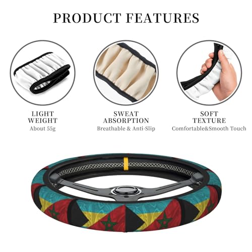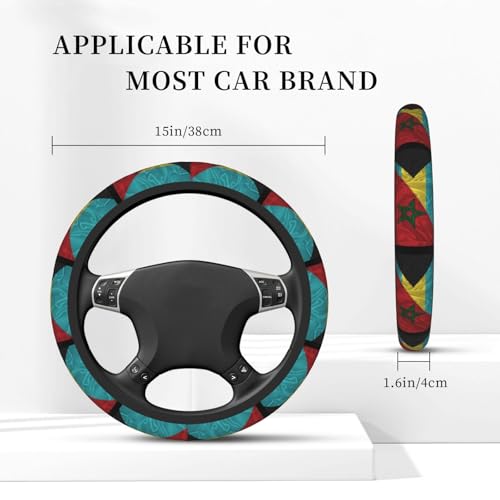 The High-Quality Thickened Neoprene Steering Wheel Cover, Which Is Comfort Breathable And Durable. Our Steering Wheel Cover Is Very Funny With Bahamas Bahamian And Morocco Moroccans Triangle Flag Pattern Design. Not Only Will It Protect Your Original Steering Wheel From Wear And Tear, But It Will Also Decorate Your Car And Give Your Steering Wheel A New Look.Let You Get The Best Driving Experience With,Let We Feel More Confident And In Command On The Road.It Is Also A Great Gift For Your Family, Friends, Colleagues.