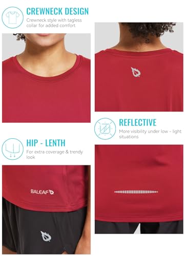 BALEAF Women’s Athletic Short-Sleeved Running T-Shirts Lightweight Quick Dry Workout Training Yoga Crewneck Tops
