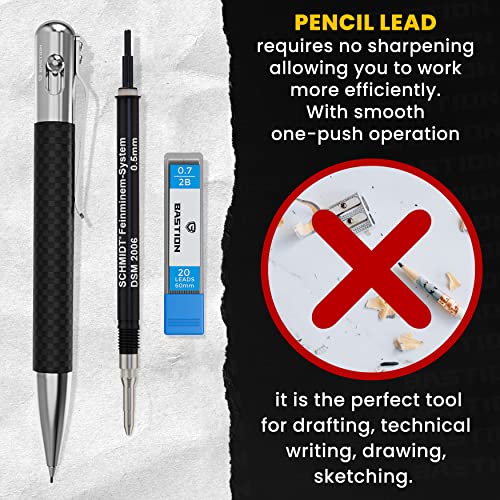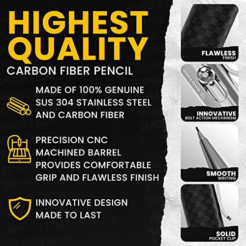 BASTION® Luxury Mechanical Pencil, Professional Medium Point Pencil for Birthday Gift includes 20 x 0.77mm Lead Refills – Carbon Fiber Stainless Steel