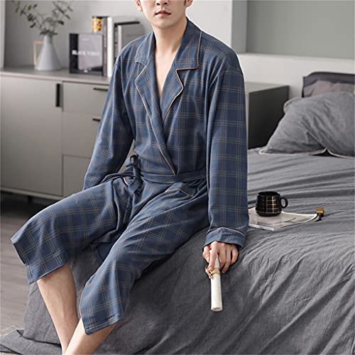 Bathrobe Men’s Long-Sleeved Casual Loose Pajamas Bathrobes Soft Home Clothes Night Gowns (Color : A Size : 2XL Code) (A 3XL Code)
