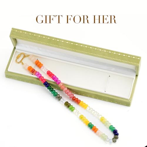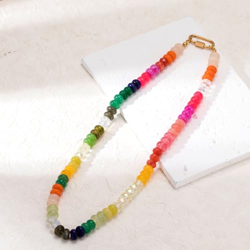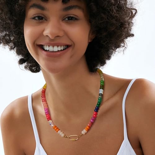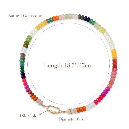 Beaded Gemstone Necklace for Women,Coloful Boho Bead Gemstone Chain 18K Gold Plated Healing Natural Stone Pendant Summer Beach Jewelry Gift