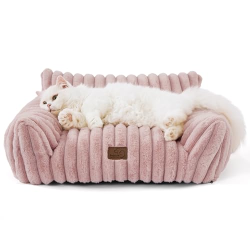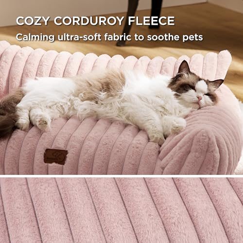 Bedsure Cute Cat Couch for Pets – Fluffy Cat Sofa with Premium Soft Corduroy Fleece, Fuzzy Cat Couch Bed with Removable Washable Cover, Supportive Cat Chair for Indoor Cats, 24inch, Blush Pink