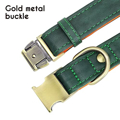 Beirui Soft & Breathable Leather Padded Dog Collar – Heavy Duty Leather Dog Collar with Durable Quick Release Buckle – Well Made Stylish Dog Collar Leather for Small Medium Large Dogs,Green,L