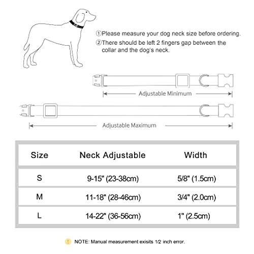 ❤Adjustable for Large Dogs – Size L: Neck:14-22″(36-56cm),Width:1″(2.5cm). FIT FOR LARGE DOGS, such as German Shepherd,Greyhound,Dalmatian,Labrador Retriever,Golden Retriever,Poodle,etc. Please make sure to measure your dog’s NECK SIZE leaving two fingers room, and carefully refer to Beirui size chart.
