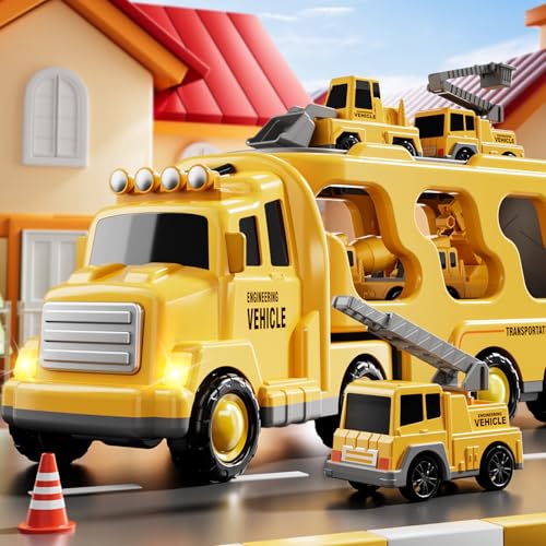 Bennol Toddler Boy Toys for 1 2 3 4 5 Year Old Boys, Toddler Car Trucks Toys for Toddler Boys Ages 1-3 3-5, 5 in 1 Construction Car Truck Boys Toddlers Birthday Gifts