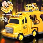 【5 IN 1 TODDLER CONSTRUCTION TRUCKS SET】The toddler boy construction toys includes a large transport truck and 4 small crane, mixer, bulldozer, and excavator. The body of cute construction trucks bus toys can rotate, adding fun to playing and attracting children, so each toddlers can happily build his own architectural base.