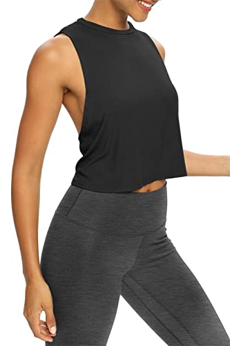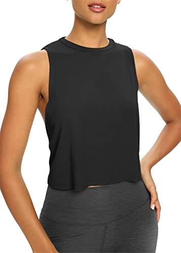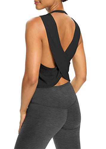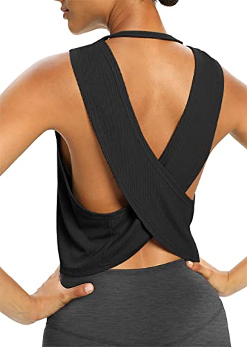 Bestisun Womens Open Back Workout Tops Cropped Loose Fit Ribbed Yoga Tank Tops Backless Athletic Shirt