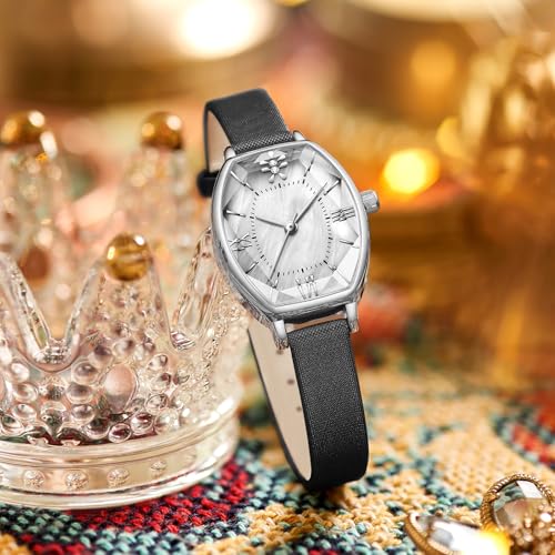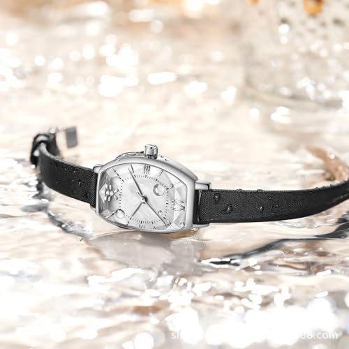 BESTKANG Womens Watch Elegant Dainty Leather Band Watches for Women Analog Quartz Watch Tonneau Dress Ladies Wrist Watch