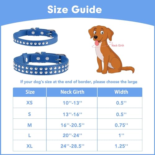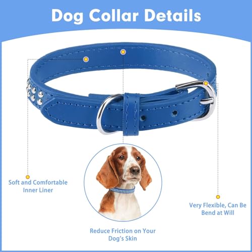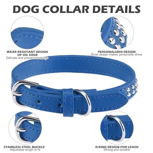 BINGPET Leather Dog Collar,Adjustable Dog Real Split PU Leather Studded Pet Dog Collar,Studded Dog Collar Leather Pet Collars for Small Medium Large Pet – Deep Blue S