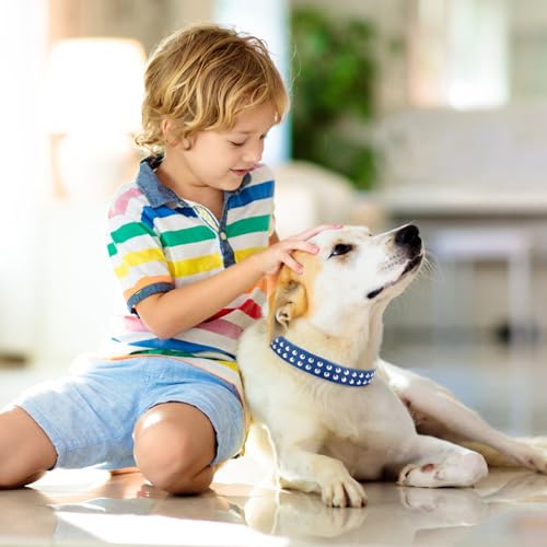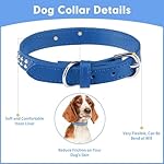 Home Pet Supplies Collars BINGPET Leather Dog Collar,Adjustable Dog Real Split PU Leather Studded Pet Dog Collar,Studded Dog Collar Leather Pet Collars for Small Medium Large Pet – Deep Blue S