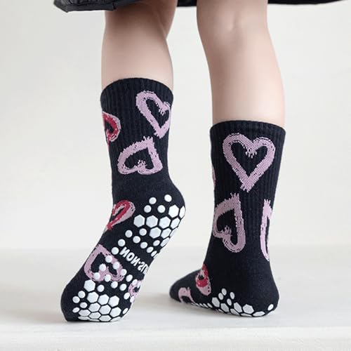 Home Apparel Socks BINIDUCKLING 5 Pack Toddler & Kids Non Slip Athletic Crew Socks with Grips 1-12 Years