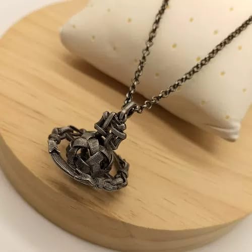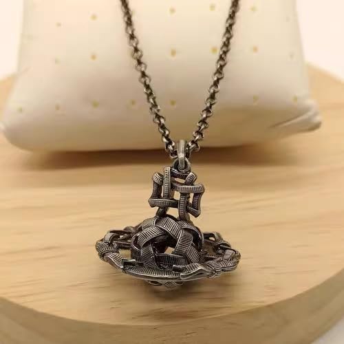 Black 3D Saturn Necklace for Women – Sky Star Planet Pendant in Punk Style