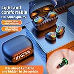 《Lightweight & Snug Fit》:Featuring ergonomic semi in ear design and weighing only 0.1 ounces (one earbud), the wireless headphones secure fit your ears and will not be easy to fall off,mini wireless earbuds bring you a stable and comfortable wearing experience.The compact and sleek charging case fits easily in pocket, thus you can take them with you anytime & anywhere. And the clean appearance look make it not only earphones but also a small decoration on your ears.