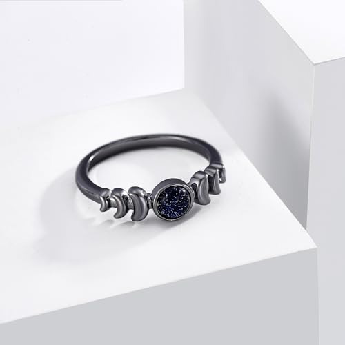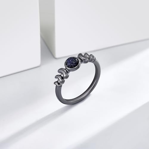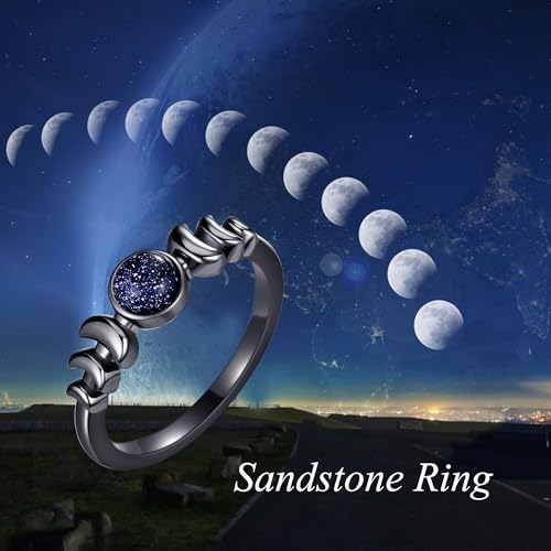 Blue Sandstone Ring S925 Sterling Silver Crescent Moon Finger Ring Galaxy Engagement Ring Sandstone Jewelry Gift for Women Wife