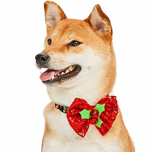 Blueberry Pet Christmas Holly Adjustable Dog Collar with Stunning Bowtie Décor, Large, 18″-26″ Neck, Award-Winning Holiday Dog Collars, Christmas Collar for Large Dogs, Eco-Friendly