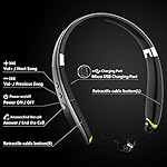 【Ergonomic Neckband & Retractable Earbuds】Ergonomic neckband design, you can wear the headphones on your neck comfort. Retractable Earbuds- a unique design for cable management, no more tangled wire obsession allows you to pull the retractable wire to the length you want and retract when not use.