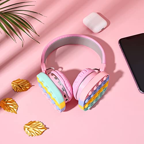Bluetooth Headphones Wireless, Fidget Headphones Kids Toy Headset Wireless Bluetooth Headphone Pop Bubble On Ear Headphone Fidget Toy Rainbow Color Fidget Headset for Children Adults (Pink)