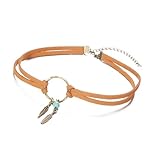 Home Jewelry Necklaces Boho Feather Turquoise Leather Choker Necklace for Women Bohemian Handmade Leaf Layered Black Brown Suede Cowgirl Cowboy Necklace for Western Style Country Party Trendy Jewelry Gifts
