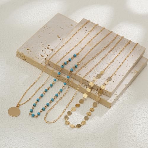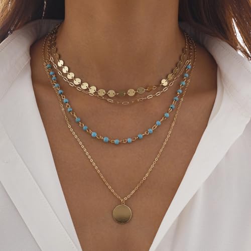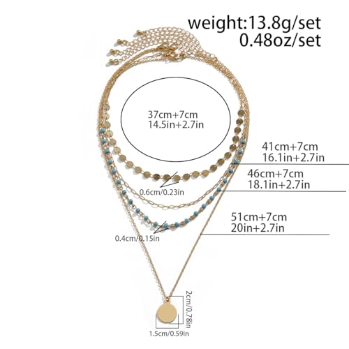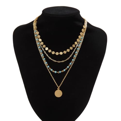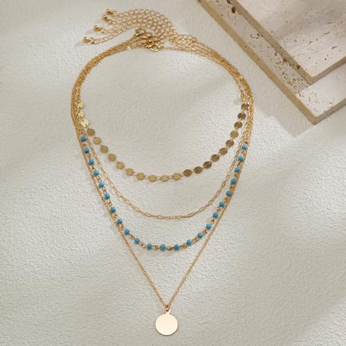 Boho Turquoise Stack Necklace Dainty Gold Layered Necklaces Bohemian Coin Pendant Necklace Western Country Choker Necklace