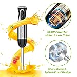 - 【Power & Fast】Equipped with an enhanced 500 Watt high-torque power motor + turbo blending, this immersion blender can handle more blending tasks and easily make smoothies, milk shakes, soups, puree or baby food. We also offer a 12-month exchange or money-back guarantee.