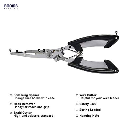 Booms Fishing H01 Small Fishing Pliers Scissors Braid Cutters Lightweight Stainless Steel Fishing Tools Split Ring Pliers Hook Remover