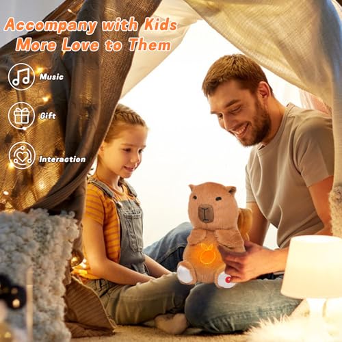 Versatile Soothing: This soothing capybara stuffed animal has soft music and soft lighting, which can mobilize your sense of sight, hearing and touch, creating different soothing experiences, The rhythmic breathing motion helps calm your Kids naturally, promoting better rest throughout the night, Feel the tension melt away as you embrace its comforting embrace