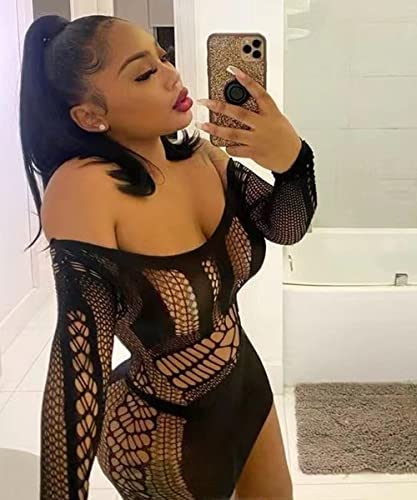 Buitifo Sexy Lingerie for Women Fishnet Mini Dress One Piece Babydoll Nightwear