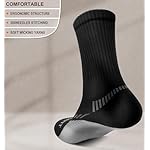 - COMPRESSION — With proper stitching density, Its particular material composistion of yarns mixed with spandex provides these crew socks proper elasticity and good compression to feet, which can promot blood flow for a more comfortable experience;