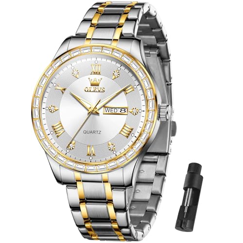 OLEVS Watches for Men with Date Stainless Steel Men Quartz Watches Roman Dial Diamond Classic Business Male Wristwatch Waterproof Luminous Calendar Reloj Para Hombr(Gold/Black/Grey/White Dial) $38.88