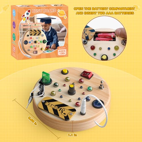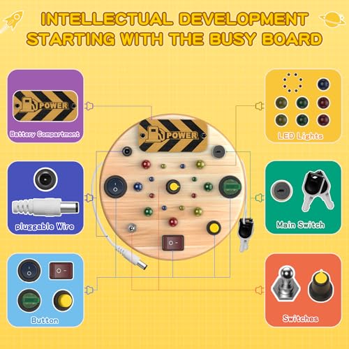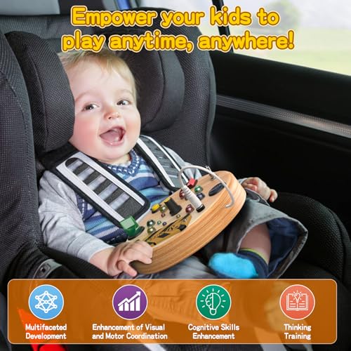 Portable and Easy to Use, Suitable for Various Settings: Toddler switch board with a compact size that’s convenient to carry, it’s ideal for home, travel, car, and airplane use. This toddler toy busy board is not only a great indoor toy, it is also a perfect choice as babies and toddlers outdoor toys.The simple operation allows toddlers to play independently without too much adult intervention. Battery-powered (batteries not included), there’s no need to worry about outlet limitations, enabling fun anywhere, anytime.
