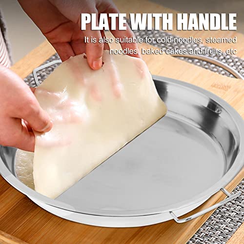 This is a very practical cold noodle making plate, made of stainless steel material for durable to use. It can be reused and cleaned easily. suitable for making cold noodle, steaming noodles, baking cakes and storing fruits, etc.