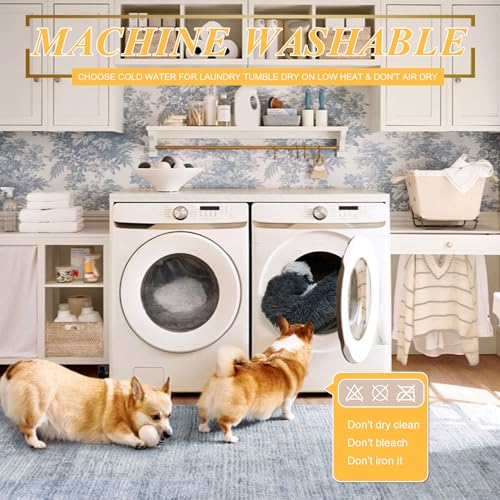 [Machine Washable]: Put the anti-anxiety fluffy dog bed in the washing machine and dry it at low temperature after washing. Note: Due to vacuum compression, you need to pat and shake the dog donut bed after receiving it, and then let it sit for 48 hours to restore its fluffy state before use.