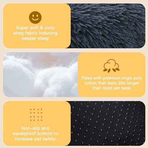 [Non-slip Bottom]: Our anti anxiety dog bed comes with a non-slip bottom for safe, cozy naps wherever you are – from the comfort of your home to adventures on the road. Perfect for car seats or trunks. And it retains its shape and fluffiness even after extended use.