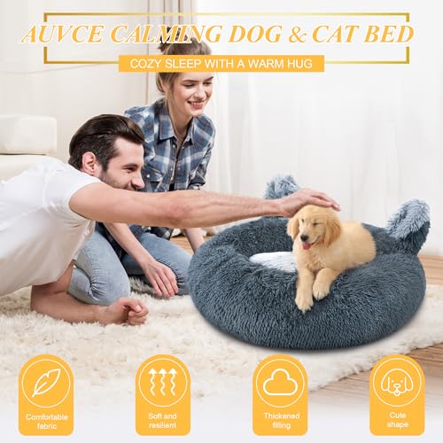 [Soft & Comfortable]: AUVCE donut dog bed is made of high quality bionic faux fur, soft and cozy as if mom’s embrace. Meanwhile, this round dog bed is filled with 30% more high density polyester fill than most competitors, which is more fluffy and comfy, allowing puppys to fully relax and sleep.