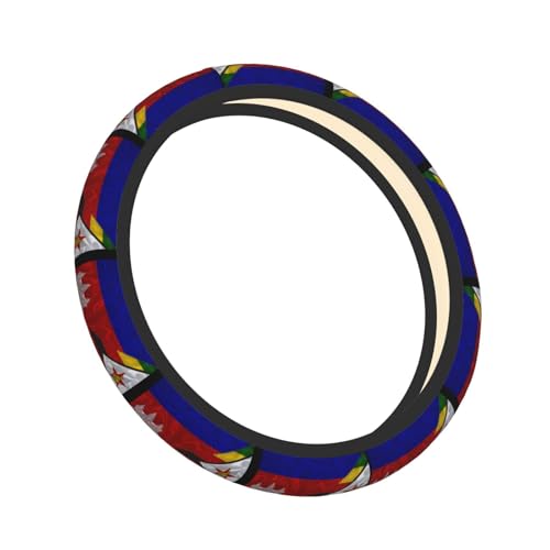Cambodia Cambodian and Zimbabwe Zimbabwean Triangle Flag Steering Wheel Cover for Men Women Universal Fit 15 Inch Anti-Slip Elastic Thickened Steering Wheel Cover