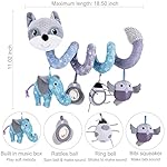 Home Toys Car Seat Toys, Baby Toys 3-6 Months Carseat Toys Stroller Toys Infant Spiral Activity Toys 0-3 Months, Hanging Car Toys for Babies 0-6 Months Newborn Boys Girls with Music Rattle Squeaker – Gray Fox