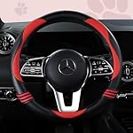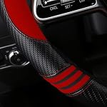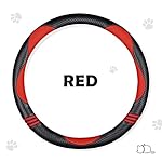 Car Steering Wheel Covers for Women Padded Carbon Fiber PU Leather Cute Auto Interior Accessories for Vehicle, Sedan, Universal, Anti Slip, Red, Standard Size 14.5-15″(37-38cm)