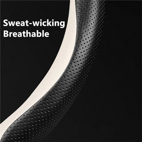 Carodi Leather Car Steering Wheel Cover, Elegant, Fashionable, Comfortable, Non-slip, Breathable, Universal 15 inch, Black and White